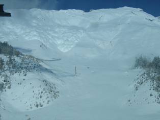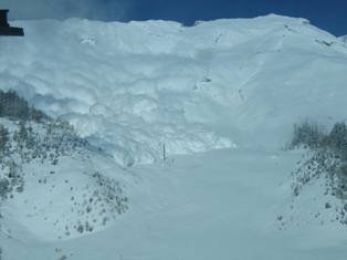Meine zweite Leidenschaft sind Lawinen. Schon als Jugendlicher war ich davon fasziniert. Seit dreissig Jahren habe ich das Glück, beim Rettungsdienst der Weissen Arena in Laax  zu arbeiten. Neben dem dankbaren Job , Leute zu retten ,die auf der Piste oder im Gebirge verunfallen, sprenge ich oft Lawinen, um die Pisten zu sichern. Dies ist manchmal vielleicht ein bisschen gefährlich , jedoch hochinteressant. Die Kraft und Zerstörungsgewalt  einer Lawine ist für mich heute noch unbegreiflich, obwohl ich mich seit Jahren intensiv mit Lawinen und Lawinenrettung befasse. Im unterem Bild sieht man eine , von uns aus dem Hubschrauber gesprengte  Lawine auf eine gesperrte Piste runterdonnern. Sie ist ungefähr dreihundert Meter breit und zwei Kilometer lang, so ein Monster wälzt alles nieder, was sich ihr in den Weg stellt.