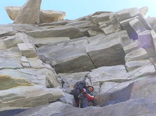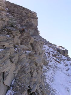 Nicht ganz ungefährliche Strahlerei in einer nicht so stabilen Nordwand